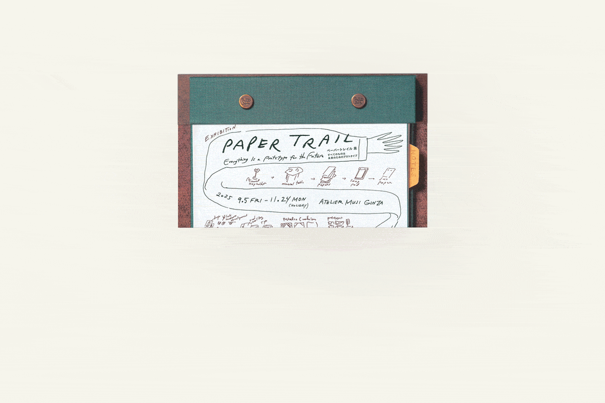 Exhibition "Paper Trail -Everything is a prototype for the future-" at ATELIER MUJI, located on the 6th floor of MUJI Ginza, from September 5, 2025 to November 24, 2025.